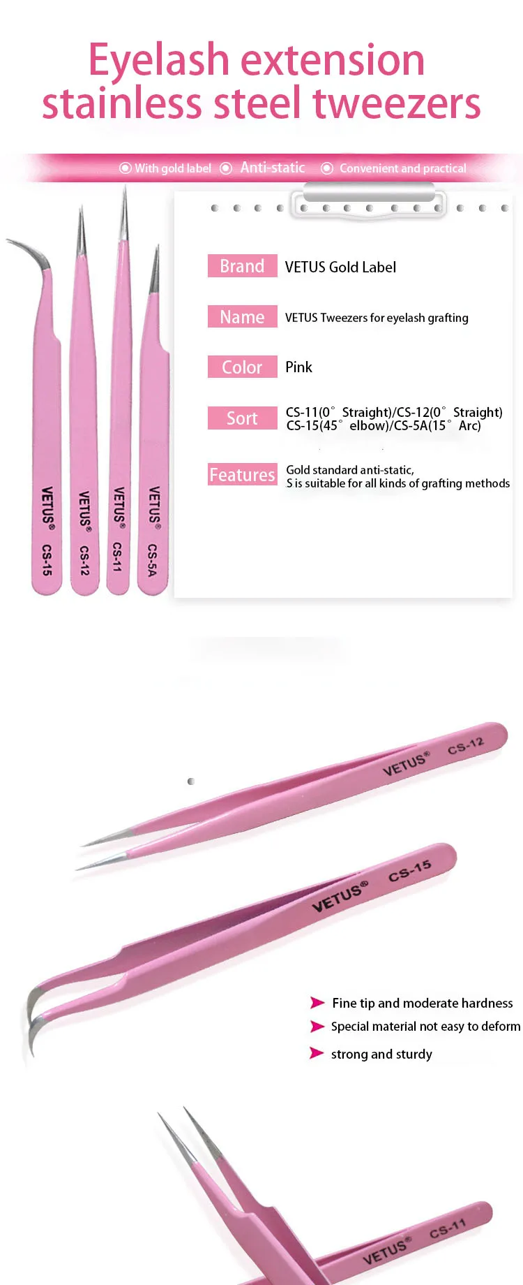 Vetus серии CS розовые щипцы для макияжа высокоточные щипцы из нерж...