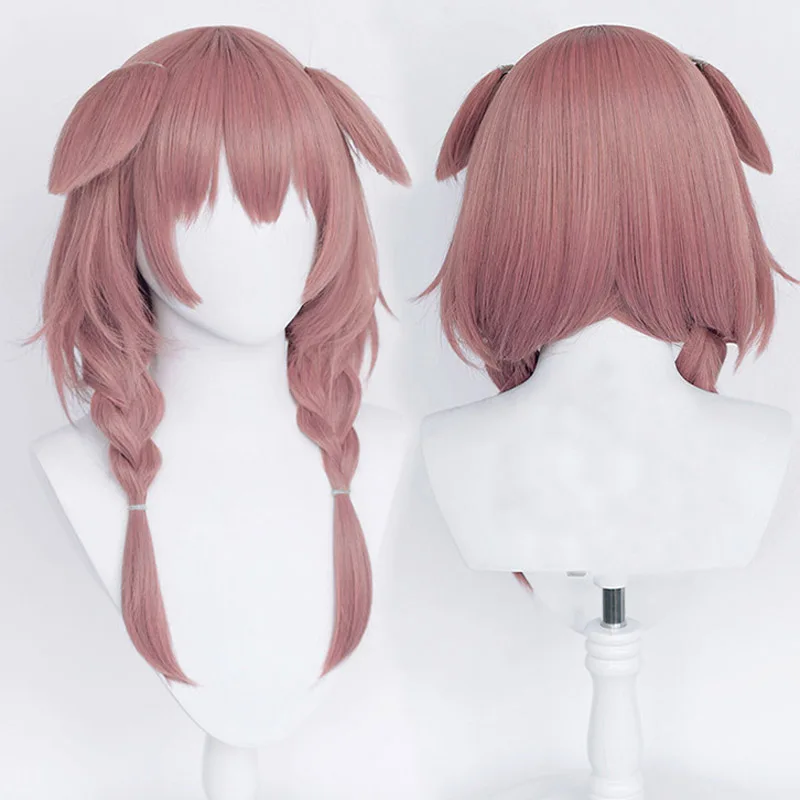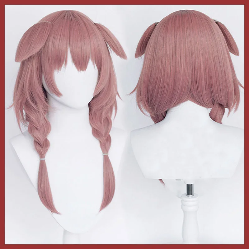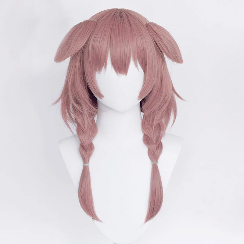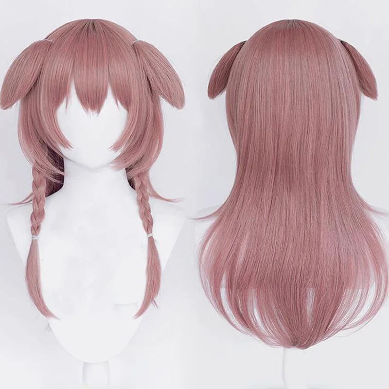 Парик для косплея VTuber Hololive Inugami Korone, синтетический, с ушками, длинные, розовые, коричневые косы Holo, без граффити, синтетические волосы для женщин
