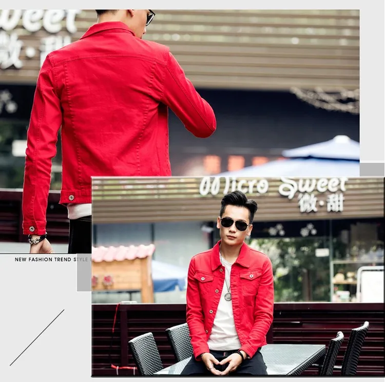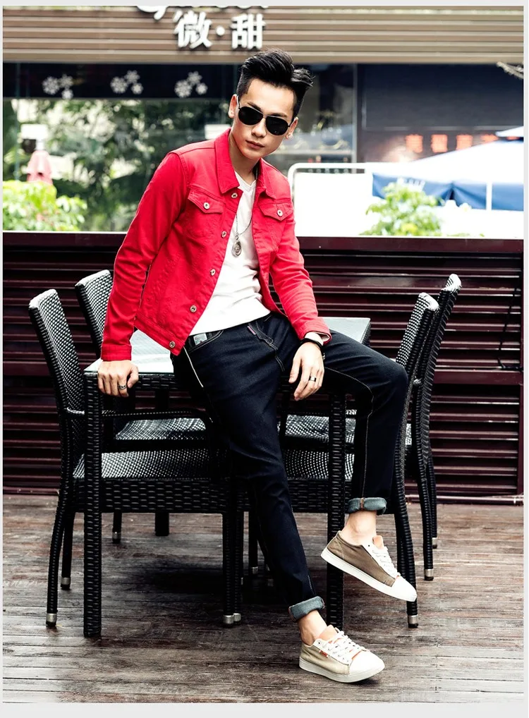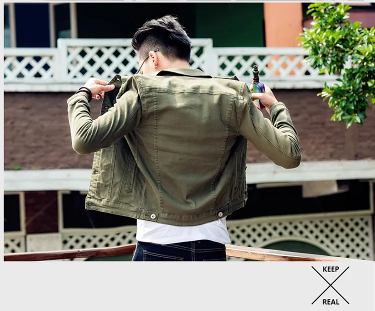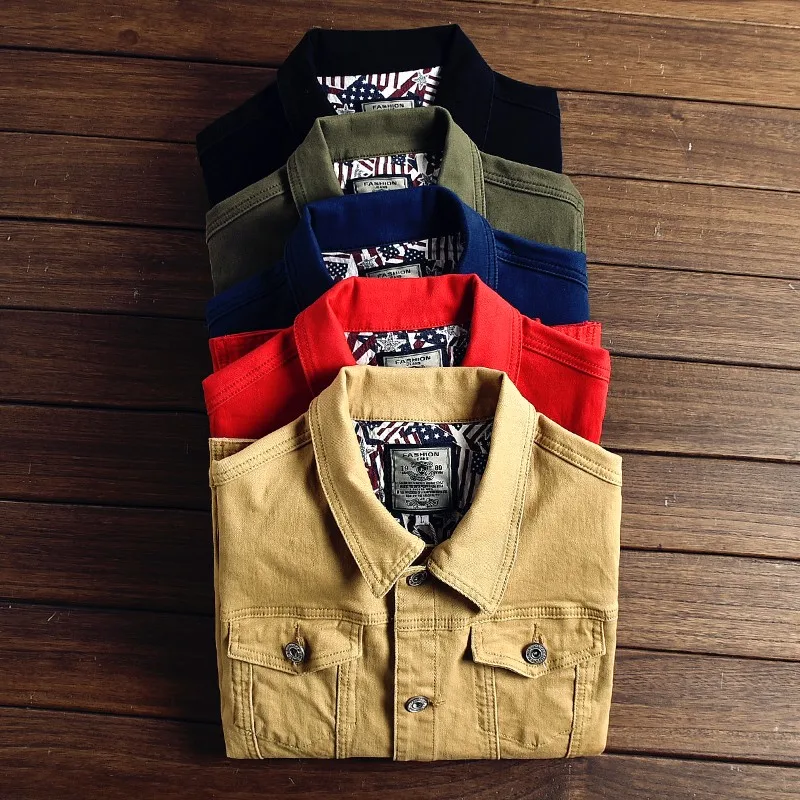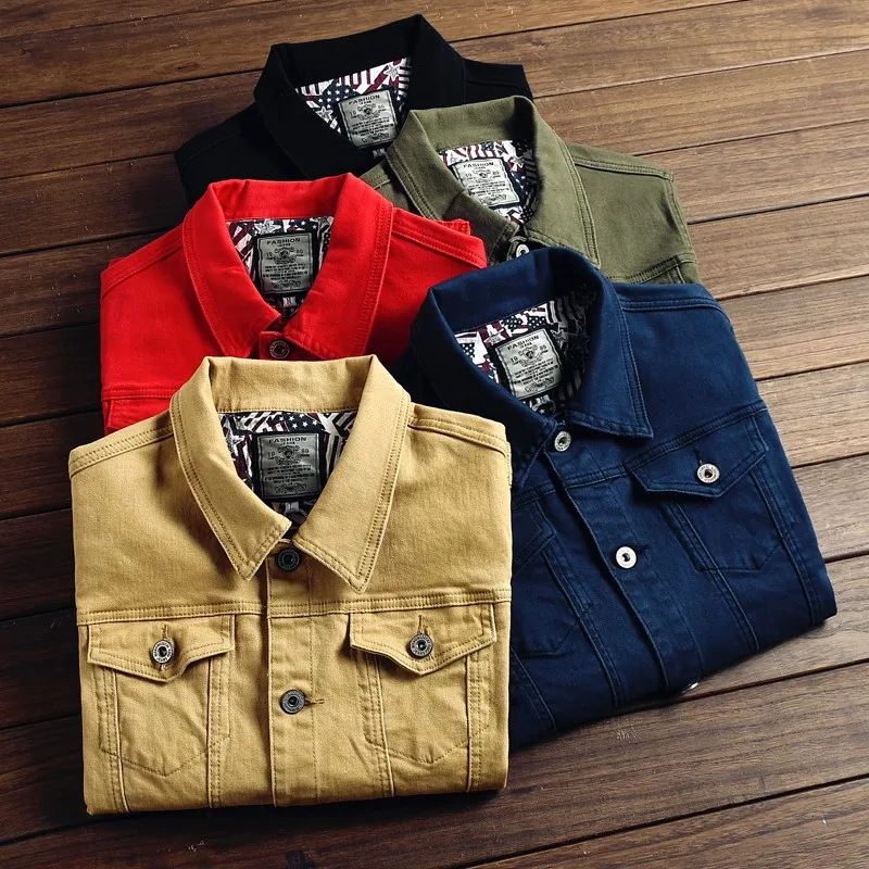Мужская джинсовая куртка, повседневная приталенная куртка цвета хаки, черного, армейского, зеленого и красного цветов, 2021