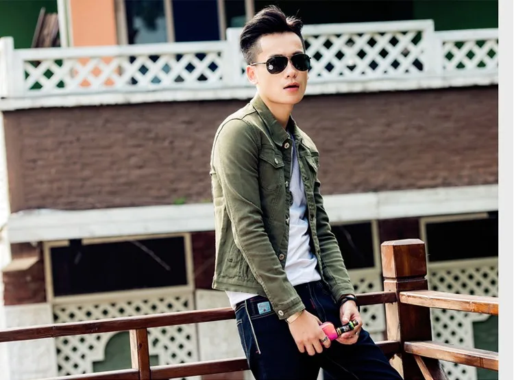 Мужская джинсовая куртка, повседневная облегающая куртка цвета хаки...