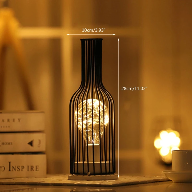 Светодиодная настольная лампа в форме бутылки с железом в стиле ретро, минималистичный ночсветильник с медной проволокой и орнаментом, настольная лампа