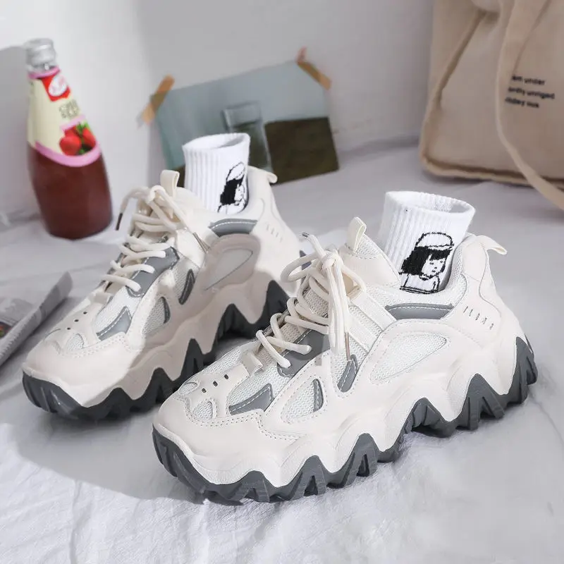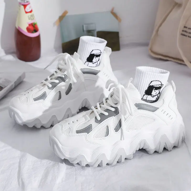 Новинка 2021, женская обувь для папы, сетчатая, универсальная, весна-лето, дышащая, на толстой подошве, повседневная, Корейская спортивная женская обувь, трендовая