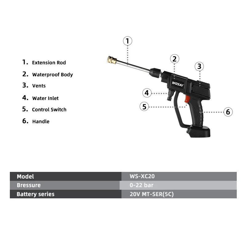 WOSAI 20V электрическая машина стиральная машина пистолет беспровод...