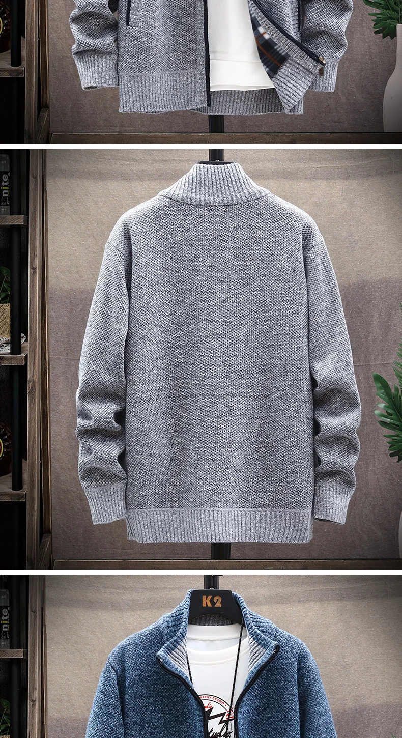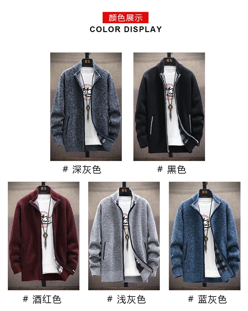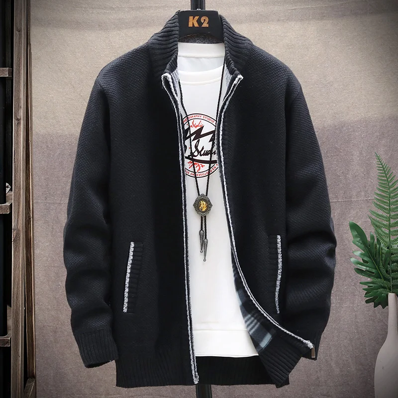 Осень 2021, корейские мужские свитера с круглым вырезом и толстым бархатным утеплителем, мужской кардиган, вязаные свитера, пальто, однотонная куртка для мужчин
