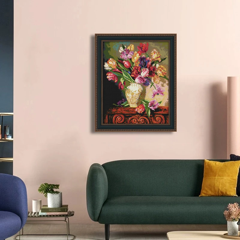 Вышивка крестиком Dmc, наборы для вышивки крестиком, ваза с тюльпанами г., рукоделие 14CT, печать на холсте, хлопковая нить, вышивка, Настенный декор