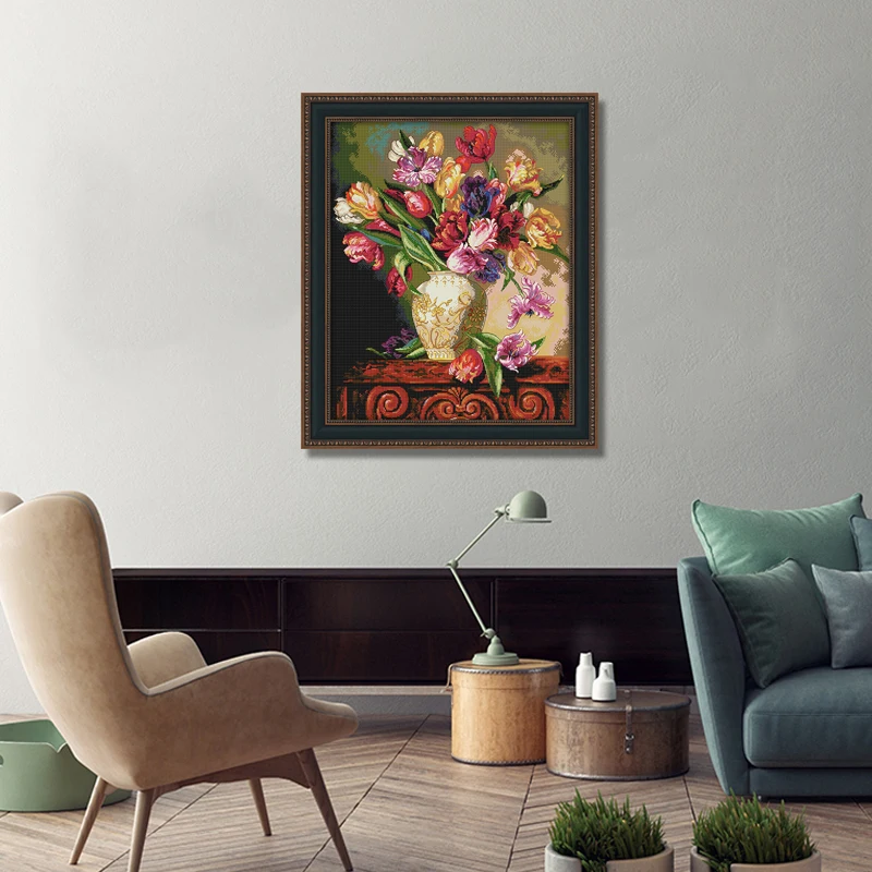 Наборы для вышивки крестиком Dmc цветок ваза с тюльпанами рукоделие 14CT Печать на холсте хлопковая нить вышивка декор стен