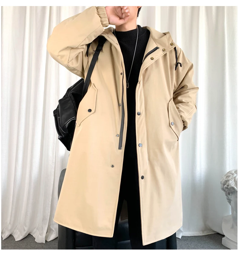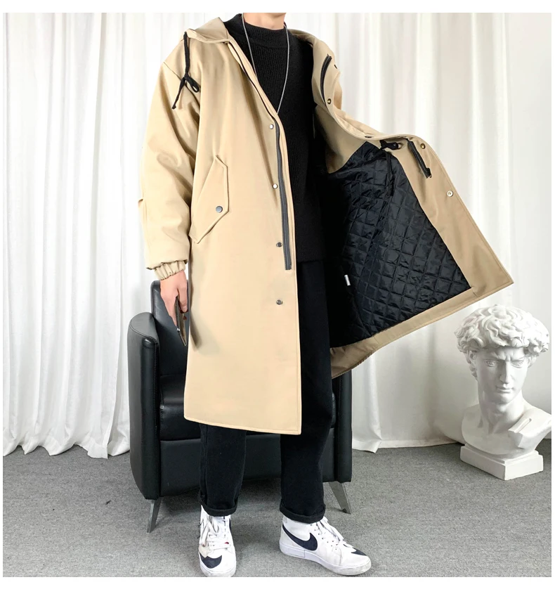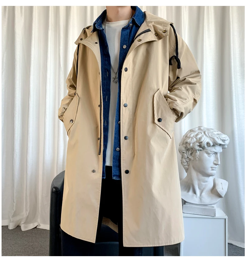 Тренч мужской с капюшоном, Длинная ветровка в стиле оверсайз, свобо...