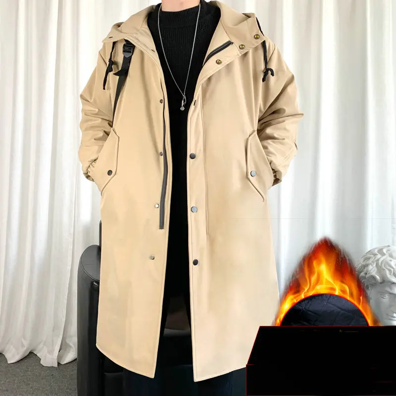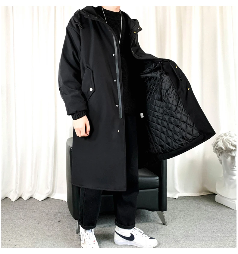 Уличная одежда, черные куртки, мужское длинное пальто с капюшоном, ...