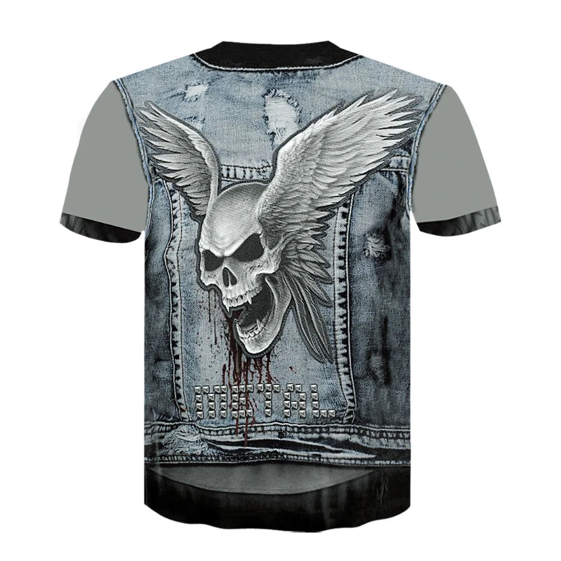 Новинка 2021 Футболка с имитацией куртки с принтом черепа 3d футболка Летняя модная футболка с коротким рукавом топы для мужчинженщин топы с коротким рукавом