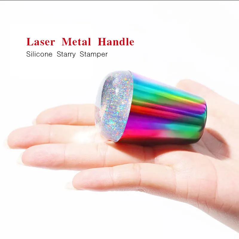 Красивый лазерный голографический Желейный штамп с ручкой Aurora, шаблон для переноса изображения, аксессуары для маникюра, инструменты