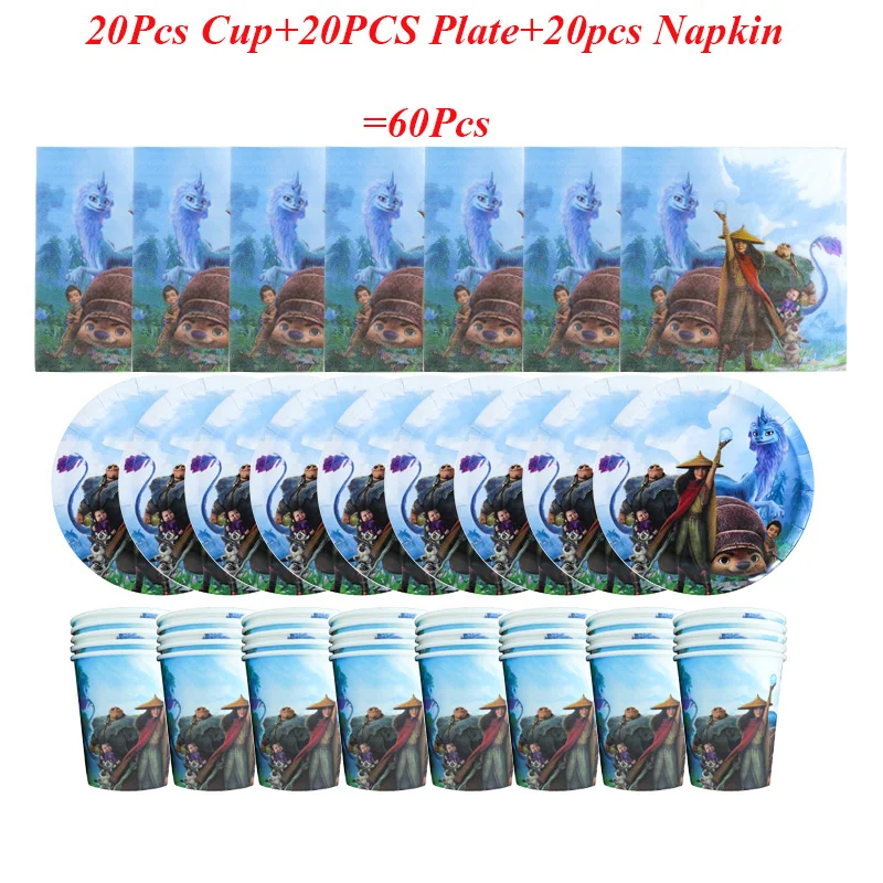 Лидер продаж, одноразовая посуда Raya and The Last Dragon 60 шт.лот для семейвечерние ринки, чашка для детского дня рождения, тарелка, салфетка