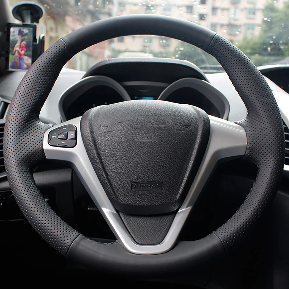 Кожаная оболочка рулевого колеса для Ford Fiesta 2008-2013 Ecosport 2013-2016