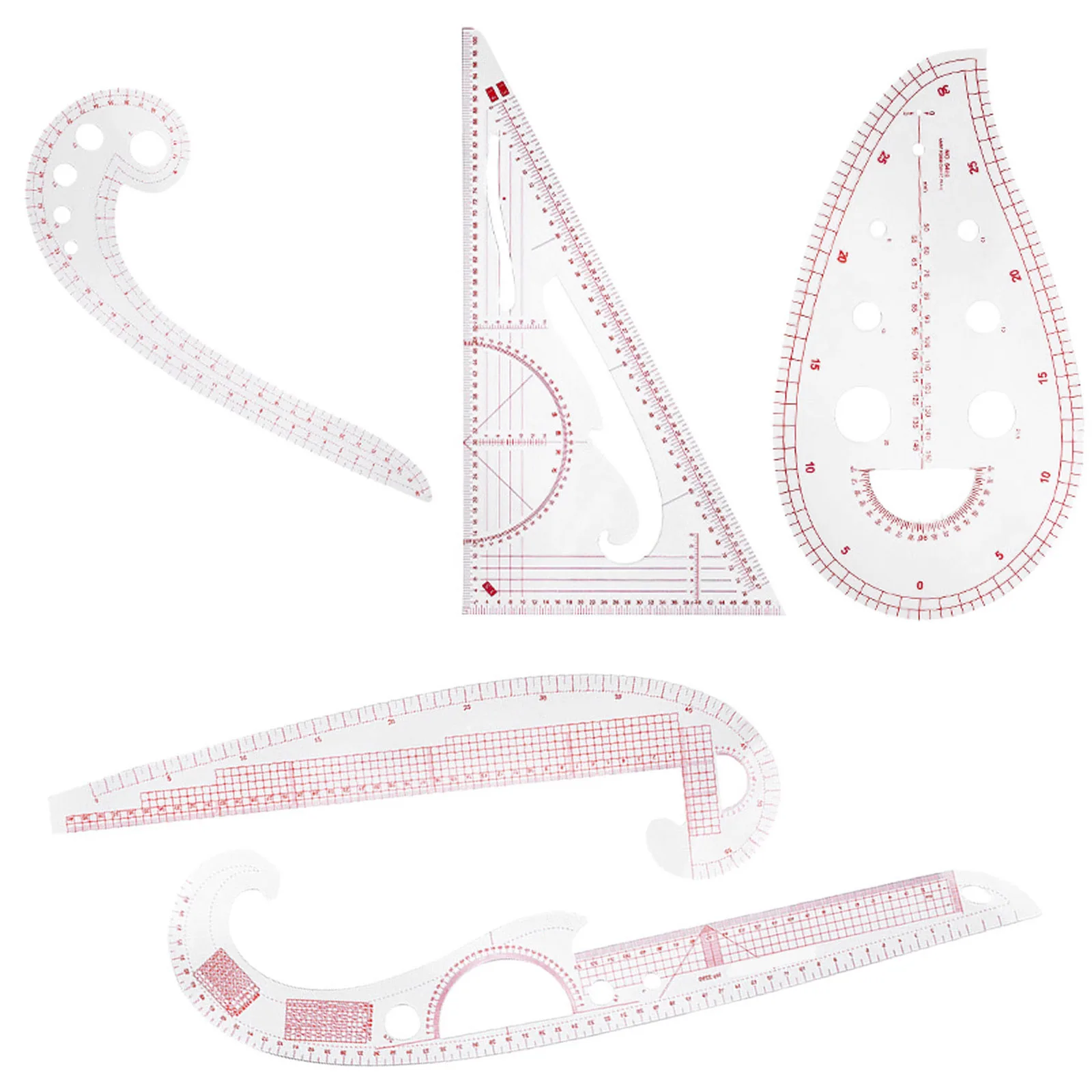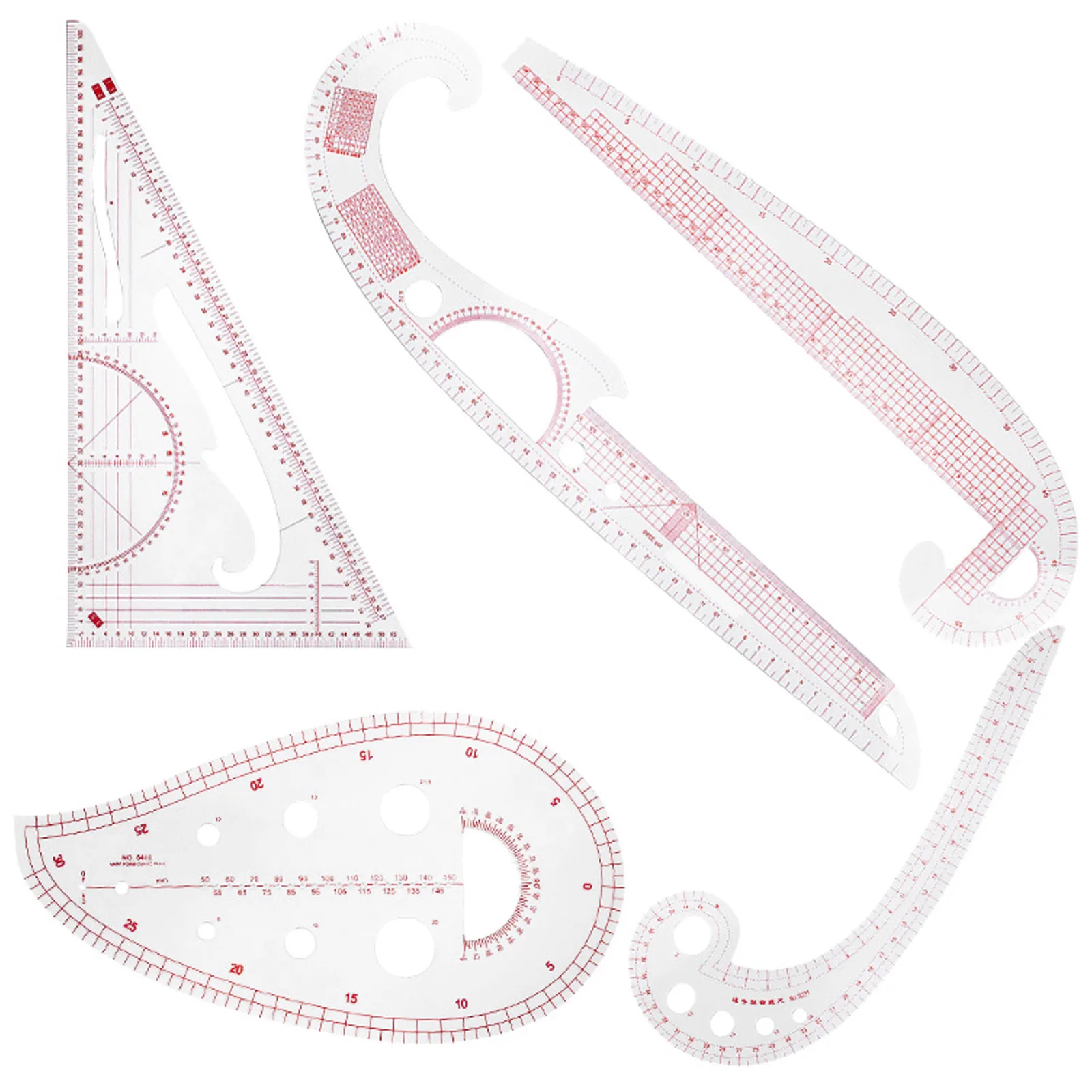 Есть 5 различных стилей, таких как треугольная линейка, полукруглая линейка, многофункциональная линейка, линейка comma и так далее, инструменты для шитья шаблонов с различными функциями, которые могут удовлетворить ваши различные требования к измерению и шитью.