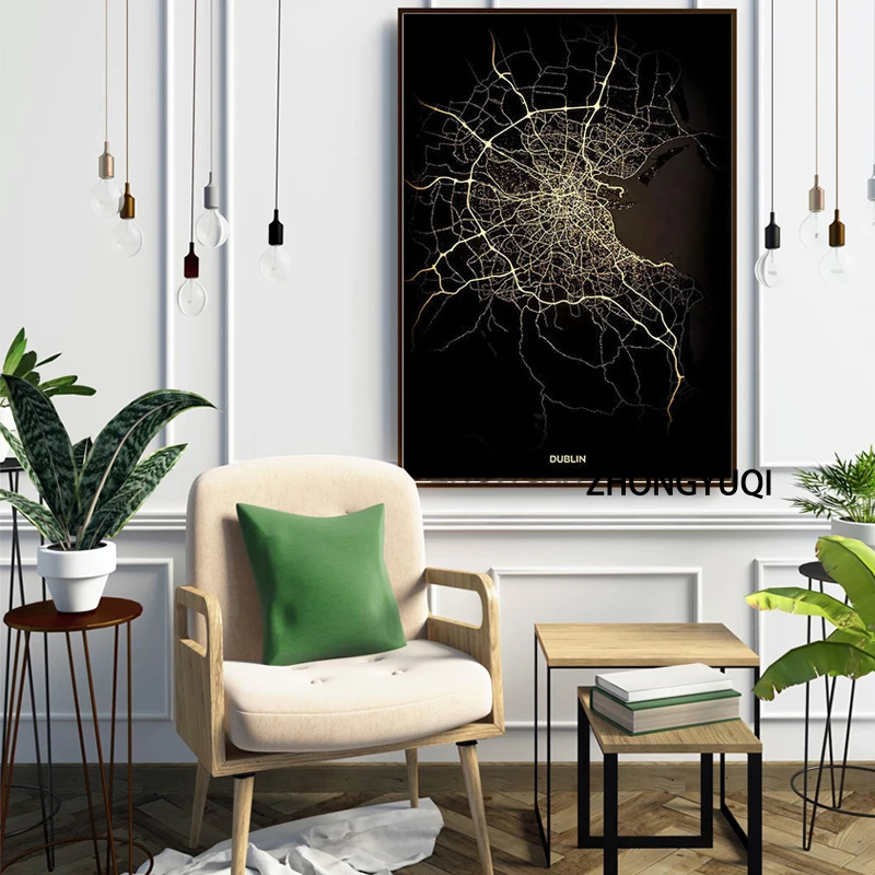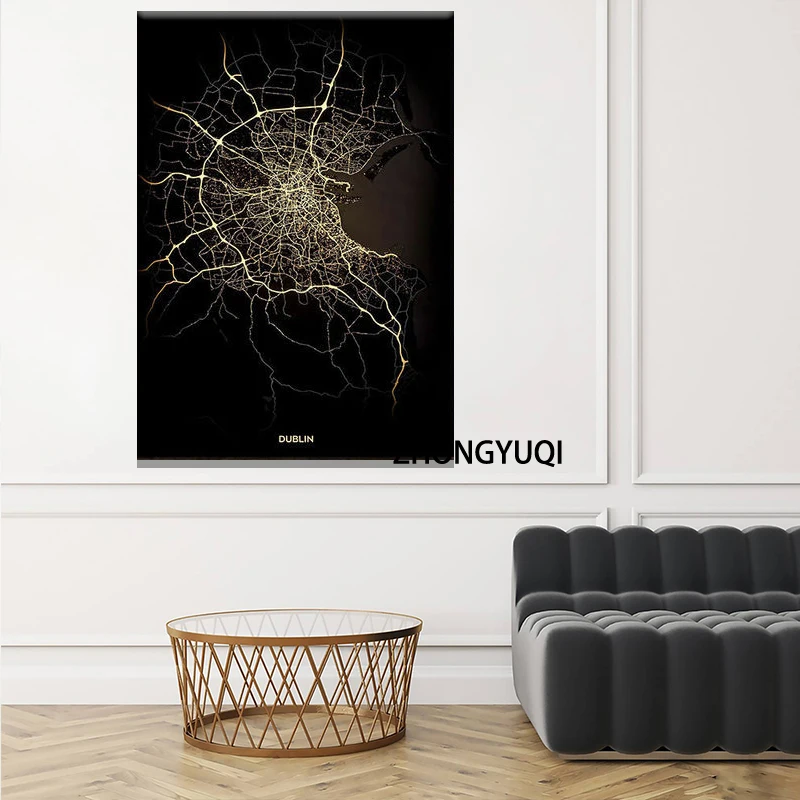 Печатная карта, плакат, холст, плакат, canvasWorld DORTMUNDMap, чер...