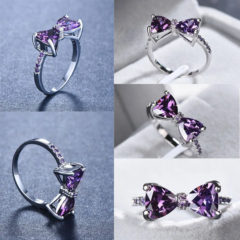 CC Модные кольца для женщин бант фиолетовый кубический цирконий кол...