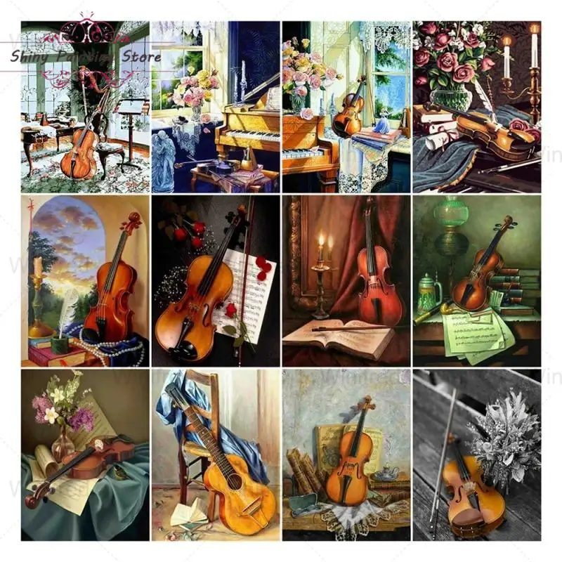 Набор для алмазной вышивки 5D сделай сам, картина с декором скрипка, гитара, классический музыкальный инструмент, вышивка крестиком, домашний декор, подарок