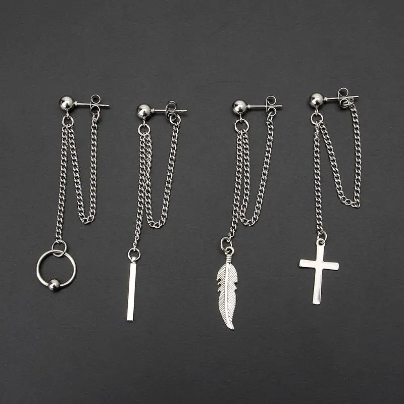 Корейские серьги Bangtang из титановой стали для мальчиков, подвеска с крестом и листом, Двойная Цепочка, серьги