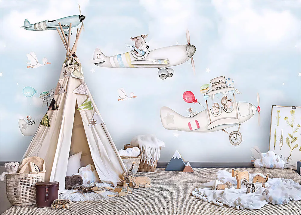 Фон для фотосъемки новорожденных с изображением летательного аппарата приключений пилота палатки