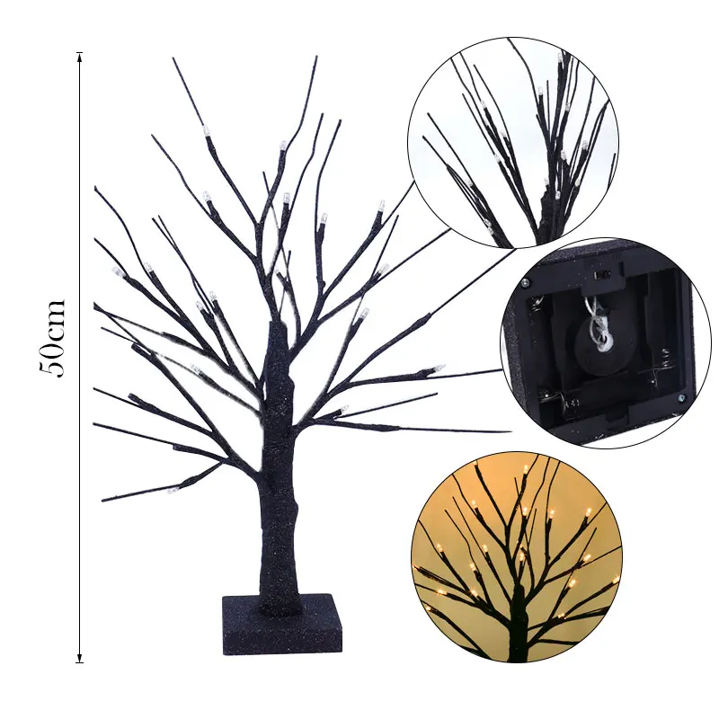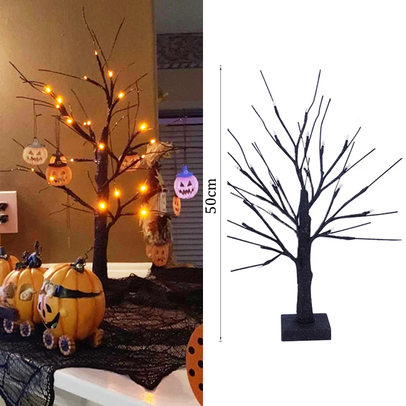 Светильник лампа в виде черной березовой березы на Хэллоуин, подвесные украшения, украшение на дерево на Хэллоуин для дома, Настольная искусственная лампа на дерево