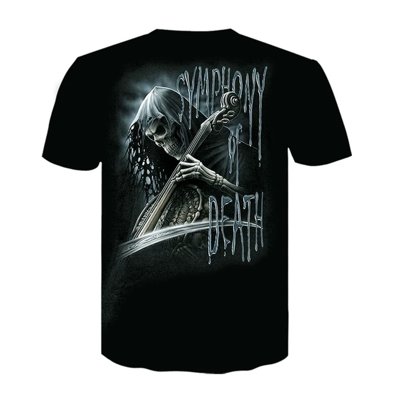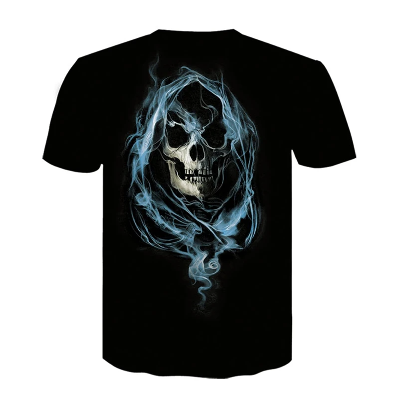 Футболка Мужскаяженская с 3D-принтом черепа, модная Готическая рубашка, черный топ с коротким рукавом, лето
