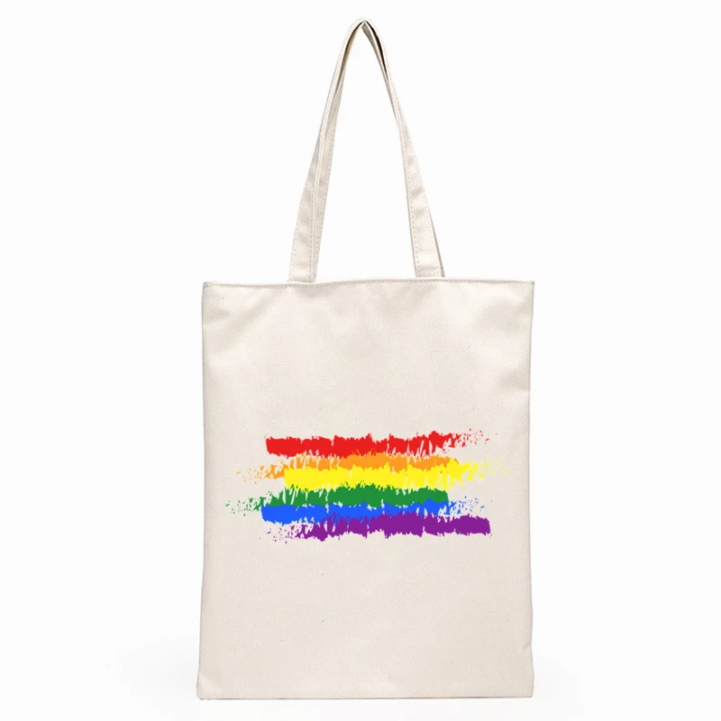 Сумка-шоппер для женщин, многоразовая, ЛГБТ, с радужным принтом