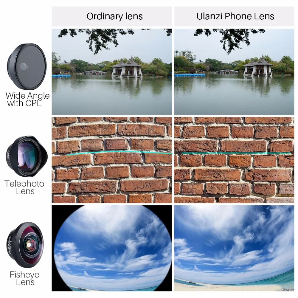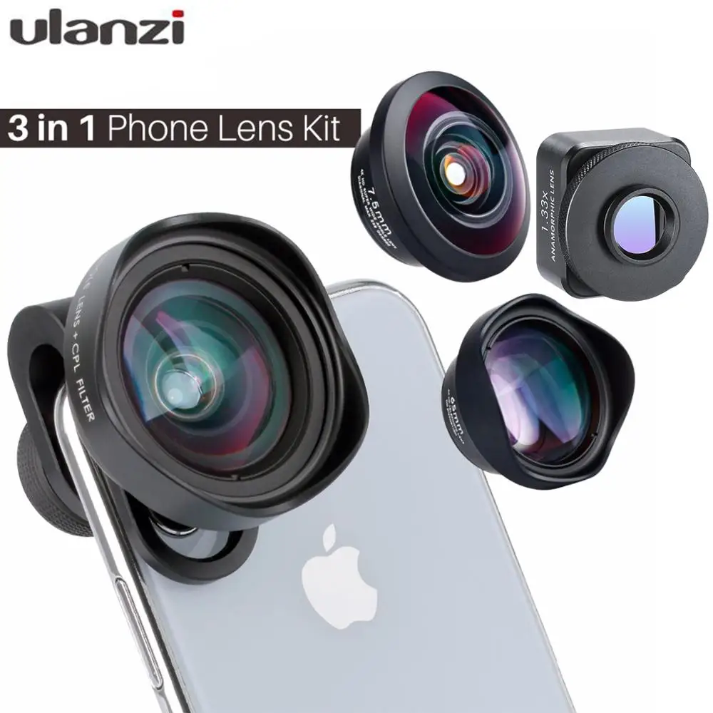 Объектив Ulanzi мобильный телефон, 17 мм широкоугольный объектив с фильтром CPL, 1,33x анаморфный телефото, макрообъектив 75 мм для iPhone 12 Pro Max