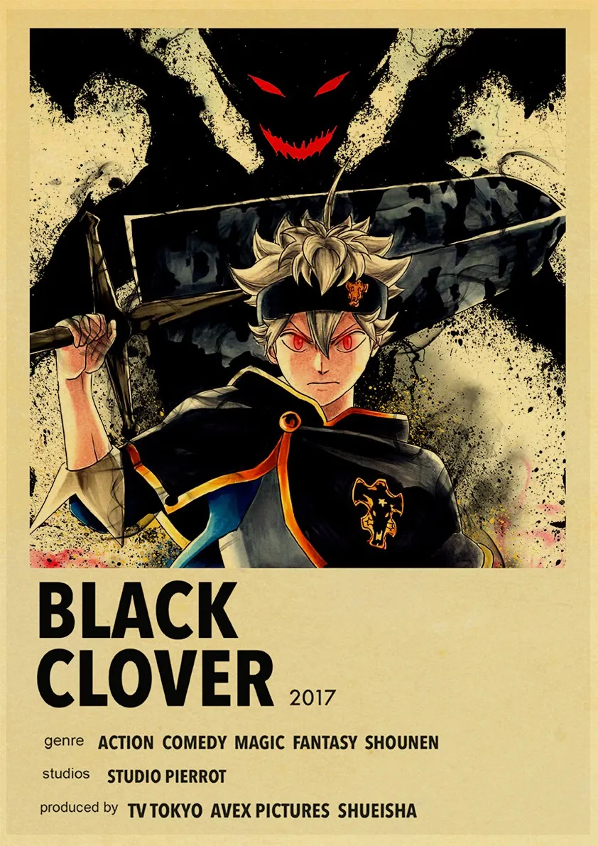 Винтажные плакаты с изображением черного клевера, японские аниме Ре...