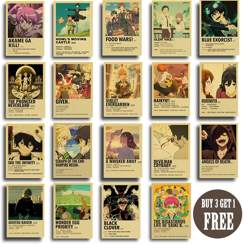 Аниме Коллекция юдзюцу кайзенобещанный неверлендHaikyuu! Ретро плак...