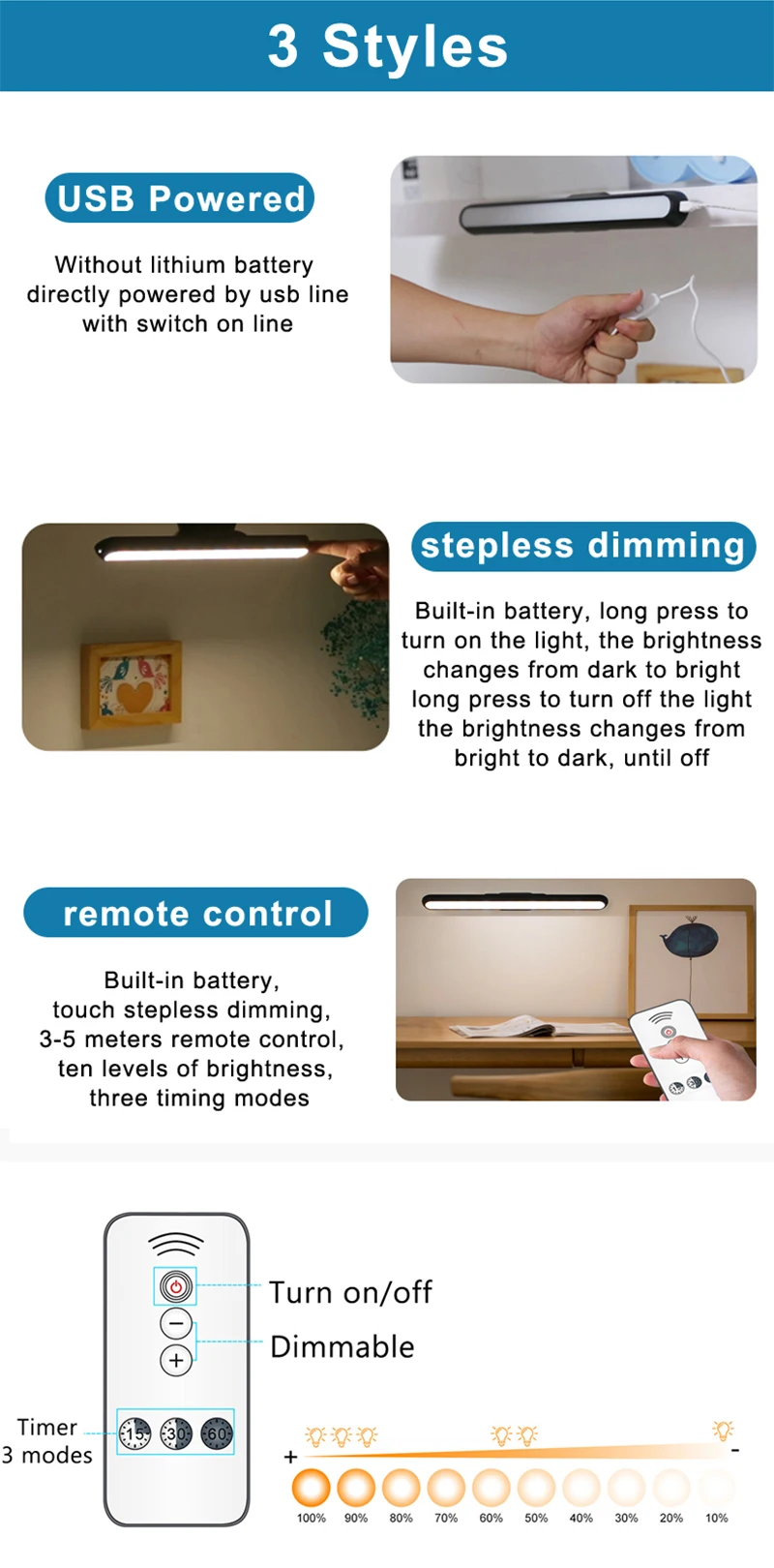 Светодиодная настольная лампа, беспроводной светильник с зарядкой через USB, с регулируемой яркостью, с защитой для глаз, для комнаты, офиса