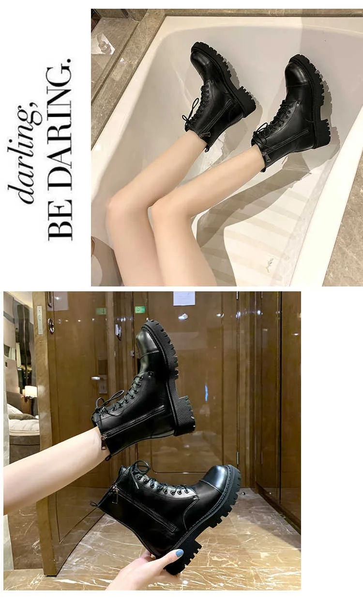 Ботильоны женские на шнуровке, Нескользящие ботинки на платформе, модная обувь, черные