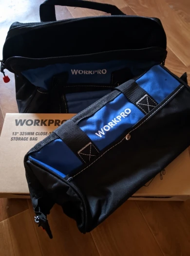 Обожаю Воркпро. В дом собрали уже полный комплект инструментов по акциям продавца. Теперь уже покупаем на подарки. Сумка на 13" чуть длиннее, чем аналогичная на 12", но пониже и поуже. Спасибо за акцию.