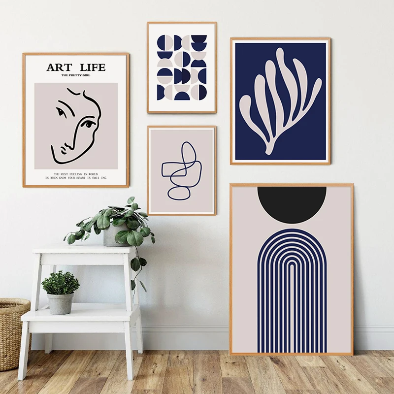 Постер в скандинавском стиле Матисс, абстрактная картина с человеческим лицом, настенное искусство, синяя Картина на холсте, принты, Современное украшение для дома и гостиной