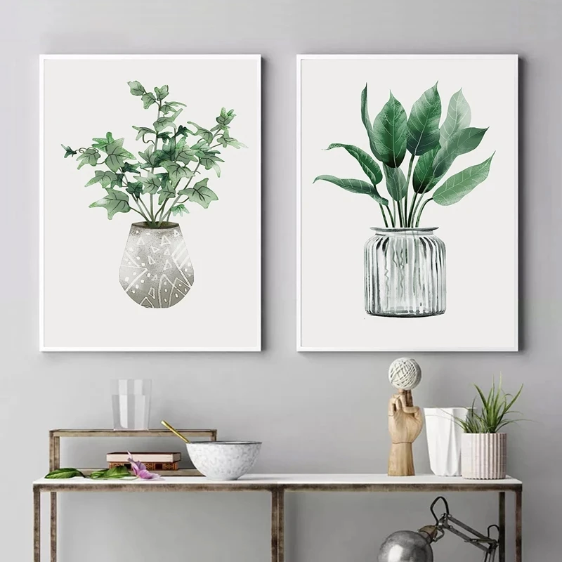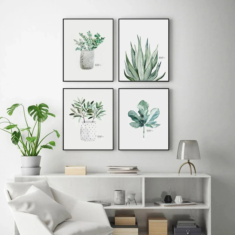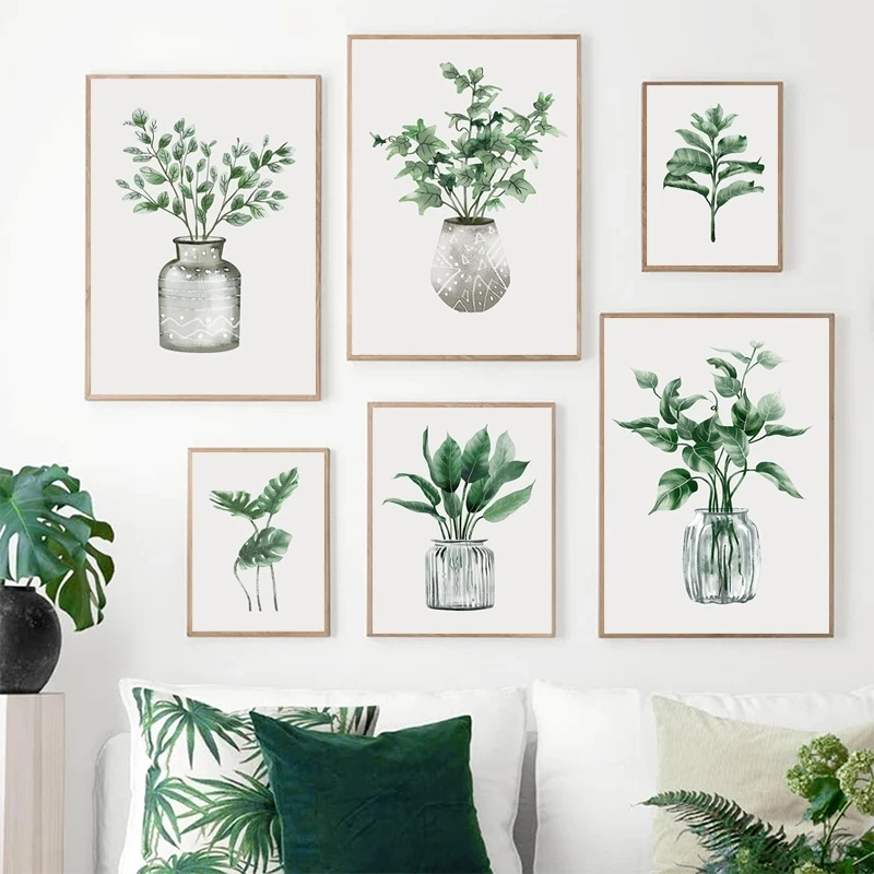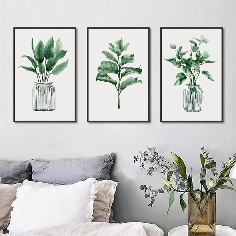 Настенные картины в простом стиле с зелеными растениями, декоративн...