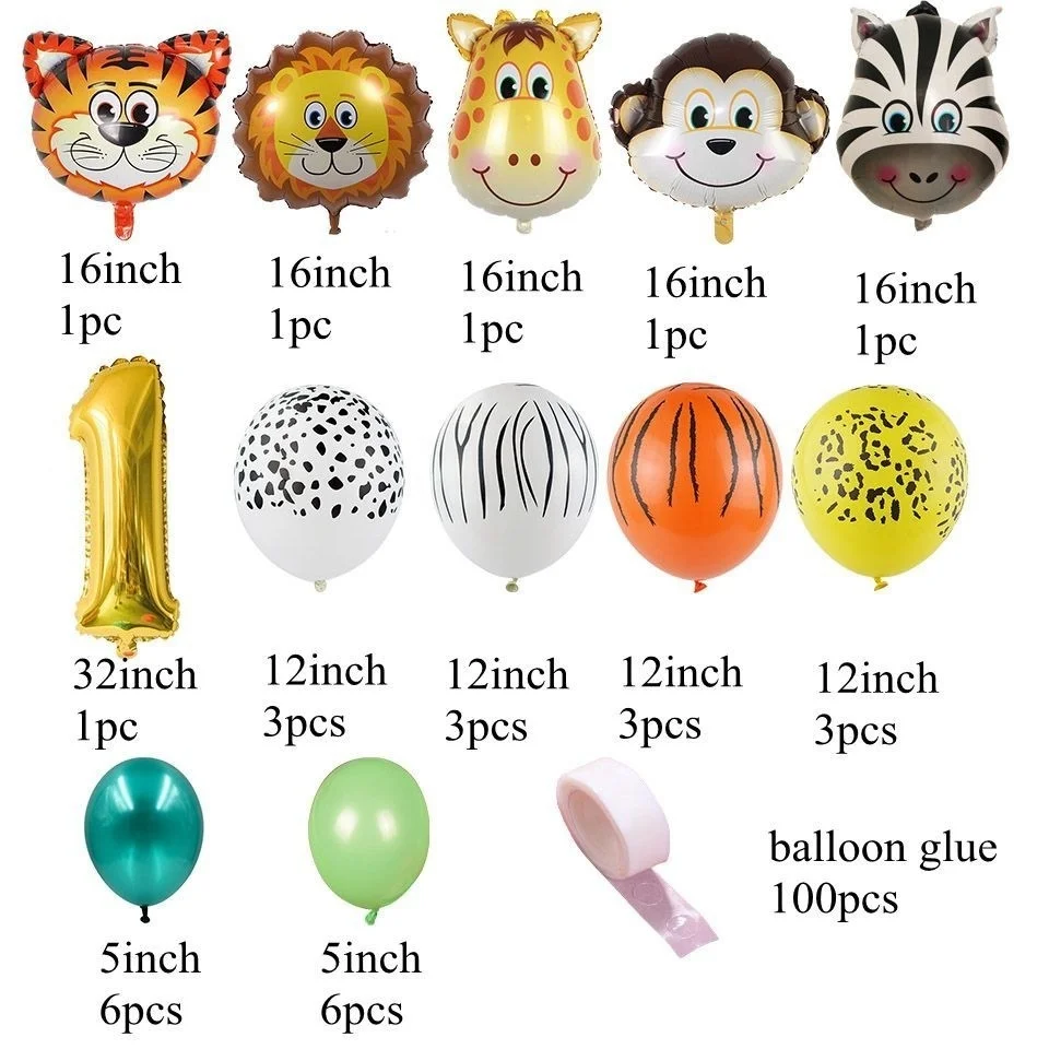 Латексные воздушные шары с изображением животных в джунглях, сафари, для дня рождения, для мальчиков и детей, 1 набор