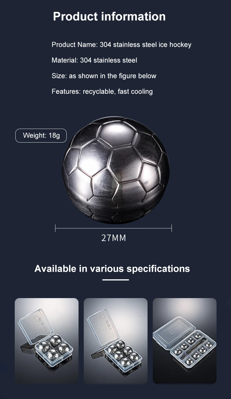 Кубики льда из нержавеющей стали в форме футбольного мяча, 8 шт.