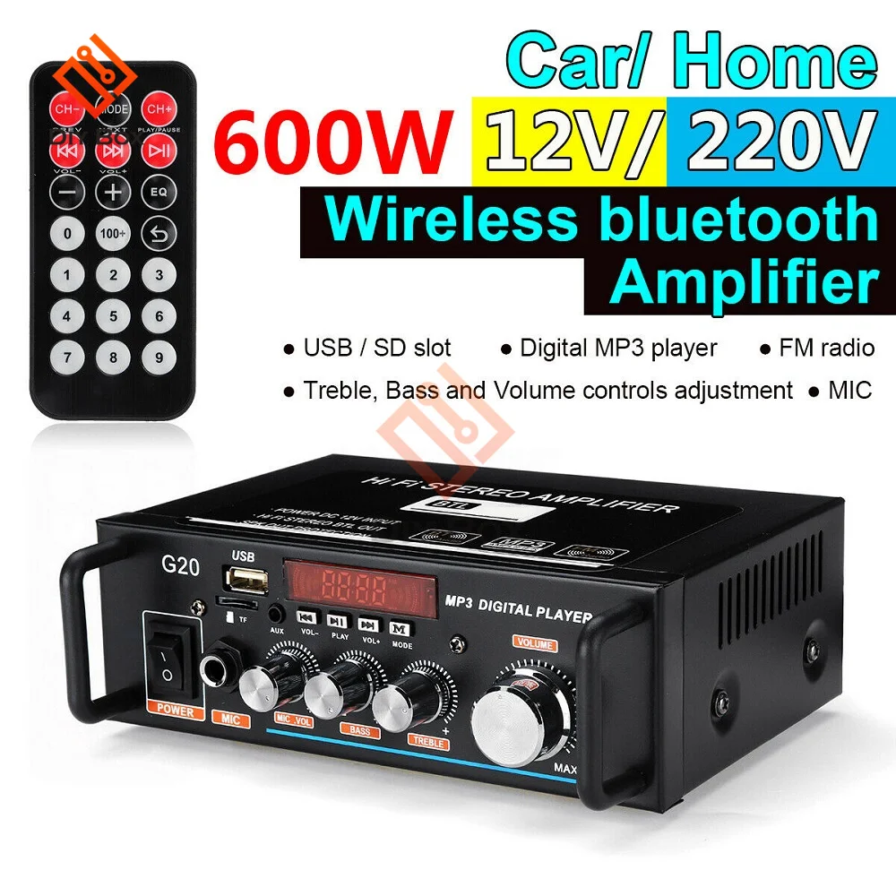 Домашние усилители 220 В, 600 Вт, HiFi сабвуфер, домашний кинотеатр, звуковая система, аудио, автомобильные усилители, FM, TF, AUX, mp3-плеер, дистанционное управление