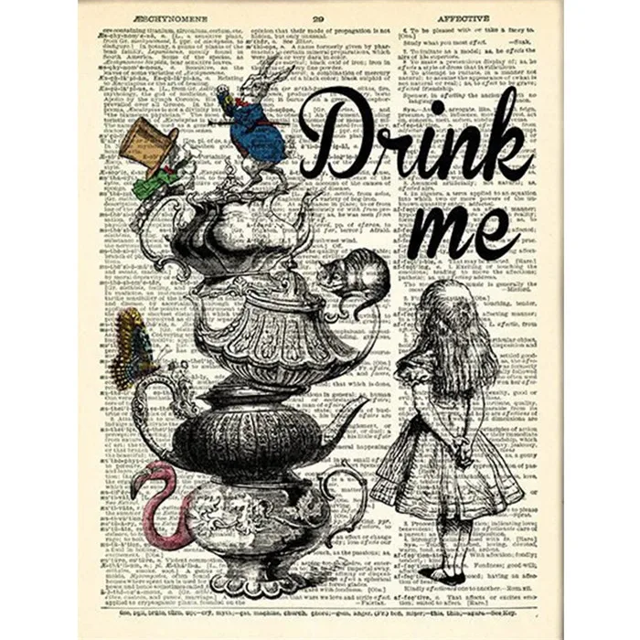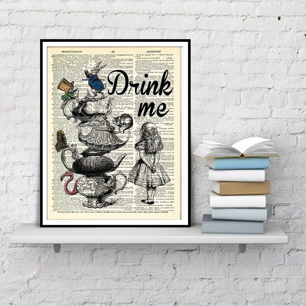 Настенный художественный плакат Алиса в стране чудес, иллюстрация, ...