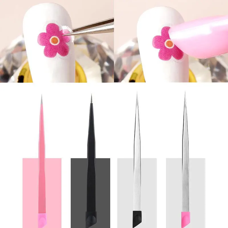 Пинцет для ногтей с 2 насадками, силиконовая насадка, наклейки для ...