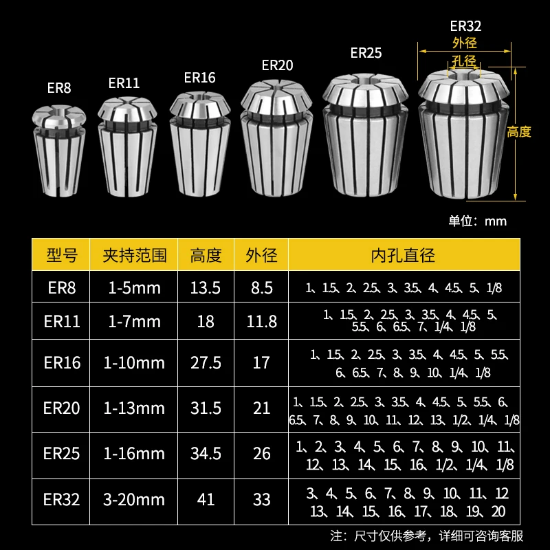Цанга пружинная для станка с ЧПУ, 1 шт., ER11 1,5 2,5 3,5 14 ER16 6...