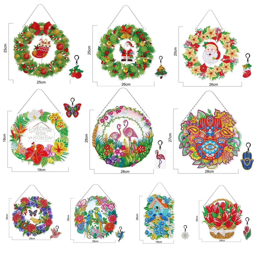 Алмазная картина сделай сам, венок, украшение для окна со светодиод...