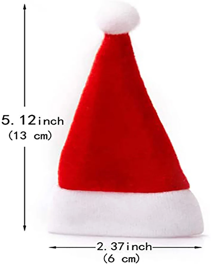 Характеристики продукта:1 шт. 5 шт. 10 шт. шляпы Санта-Клауса для создания праздничной атмосферы для семьи. (Нож, вилка, ложка и т. д. не включены)Удобный материал и размер:Изготовлен из хлопка, мягкий, удобный, безопасный, не загрязняющий окружающую среду, прочный и легкий. Его можно использовать несколько раз и имеет достаточно места для украшения. Размеры: 5,5x2,4 дюймов.Рождественская мини-шляпа:Красивая и веселая Рождественская мини-шляпа идеально подходит для любого рождественского события, будь то декоративные столовые приборы, декоративная бутылка Красного вина или незаменимый предмет для домашнего декора.Идеальное Украшение: не только для украшения рабочего стола, но и для творческих проектов, вы также можете повесить дополнительные шляпы на рождественскую елку для украшения и наслаждаться веселым семейным рождественским обедом с семьей.Случаи:Его можно использовать для украшения рождественских столовых приборов, бутылок для вина, леденцов, кукол и различных реквизитов. Вы можете использовать свое воображение, чтобы создать теплые рождественские вечерние дни.