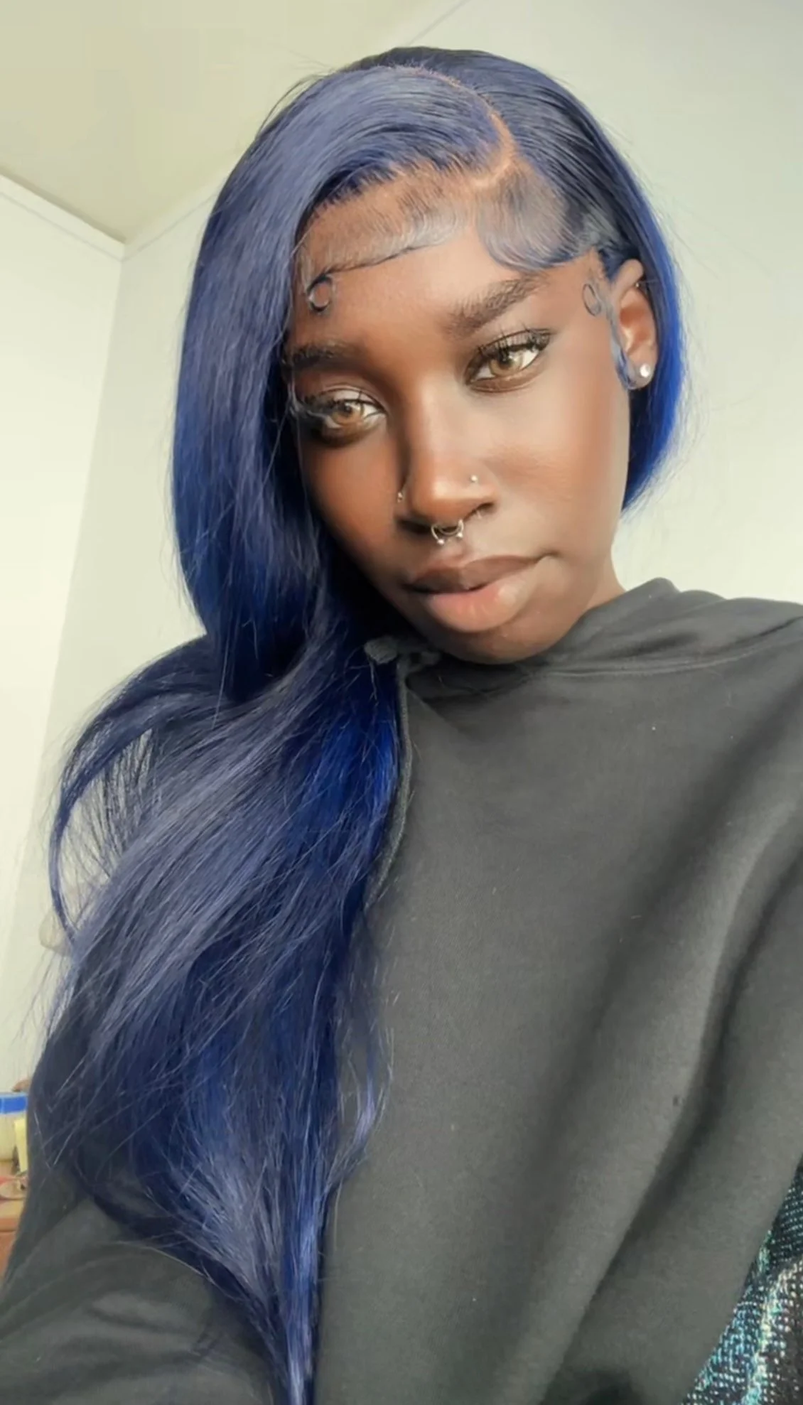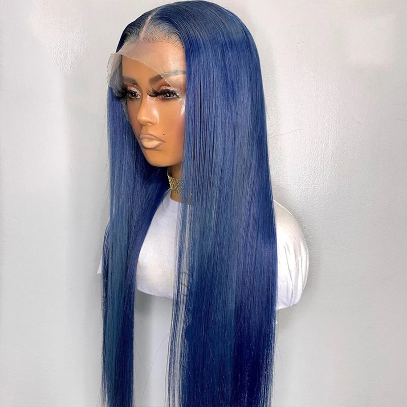 Парик из натуральных волос синего цвета, прямой бразильский парик без клея с застежкой из натуральных волос Реми для женщин