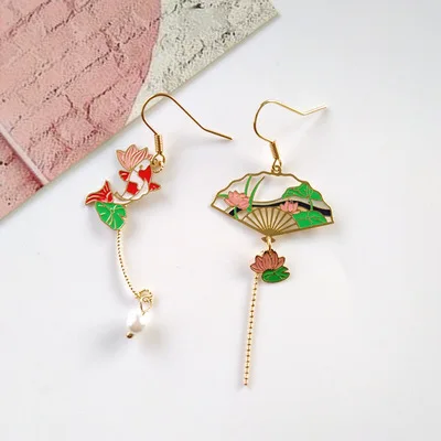 Женские серьги-подвески в китайском стиле, серьги в китайском стиле с милыми асимметричными животными, кошками, кроликами, складные серьги для моделирования веера, ювелирные изделия, 2021
