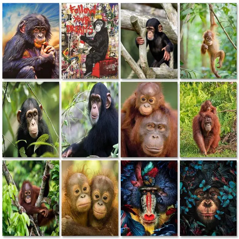 GATYZTORY DIY картины по номерам обезьяны наборы домашний декор животные живопись по номерам рисунок на холсте Ручная роспись искусство подарок
