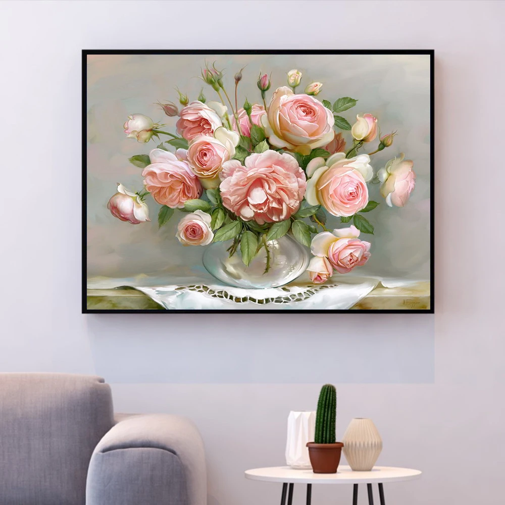 HUACAN вышивка крестиком цветок в вазе наборы розы цветочные наборы...