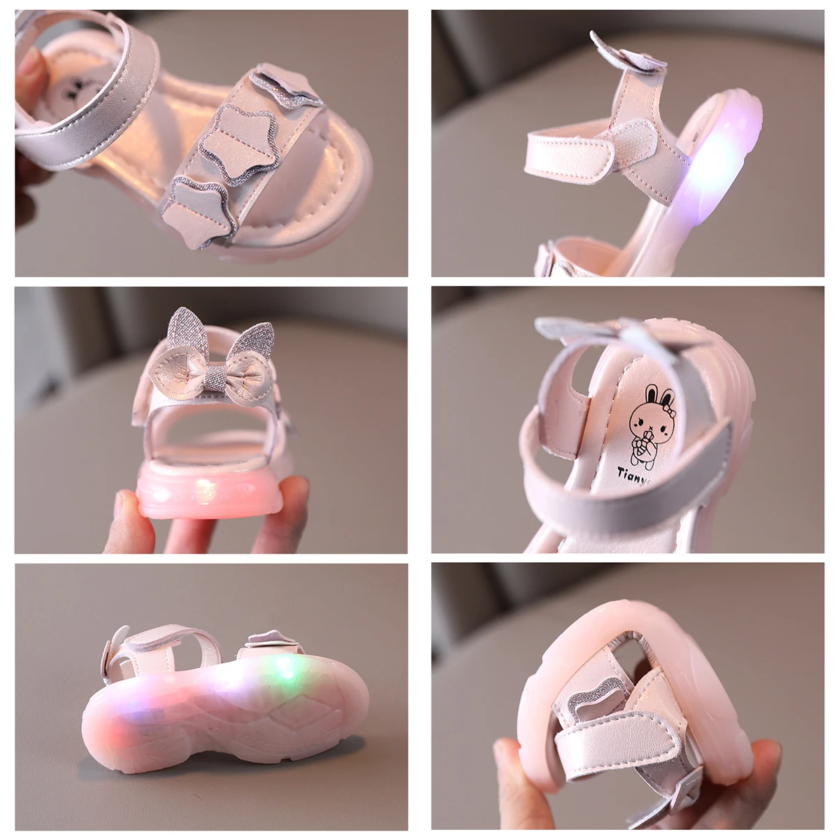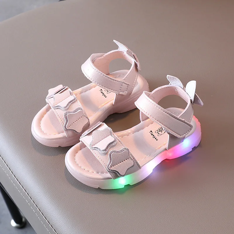 Сандалии Todler для девочек, дышащие светящиеся пляжные шлепанцы с ...