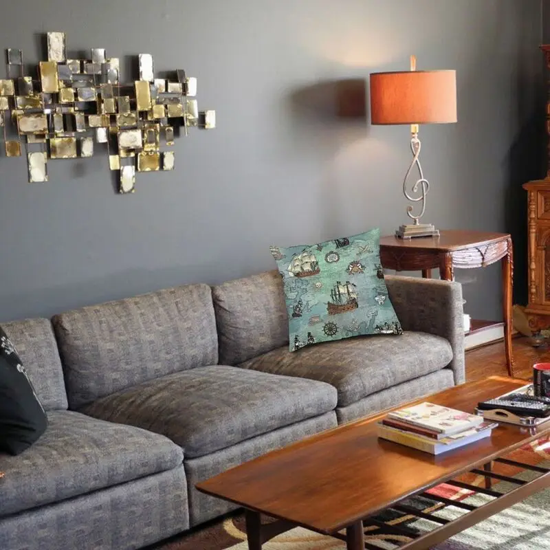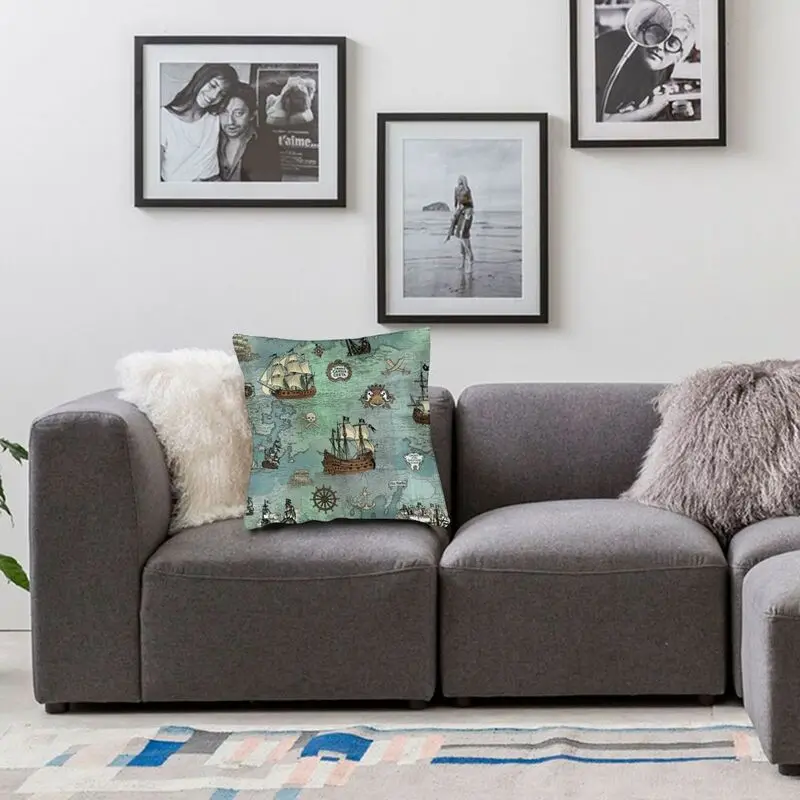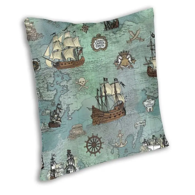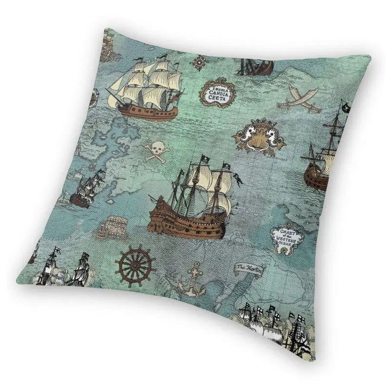 Модный Чехол на подушку с морским принтом пиратской карты, чехол для домашнего декора с 3D двусторонним принтом черепа, Матросская наволочка для гостиной