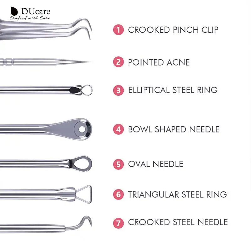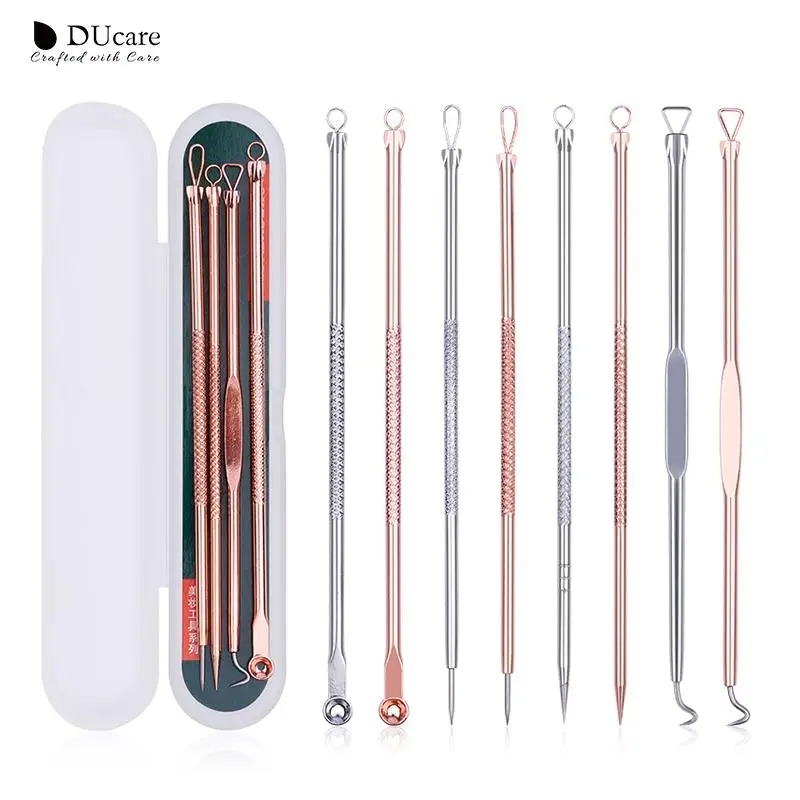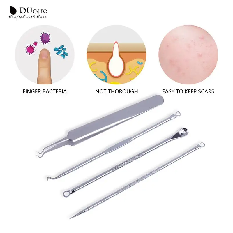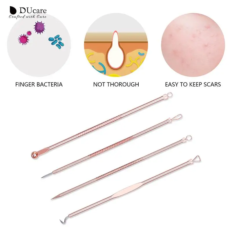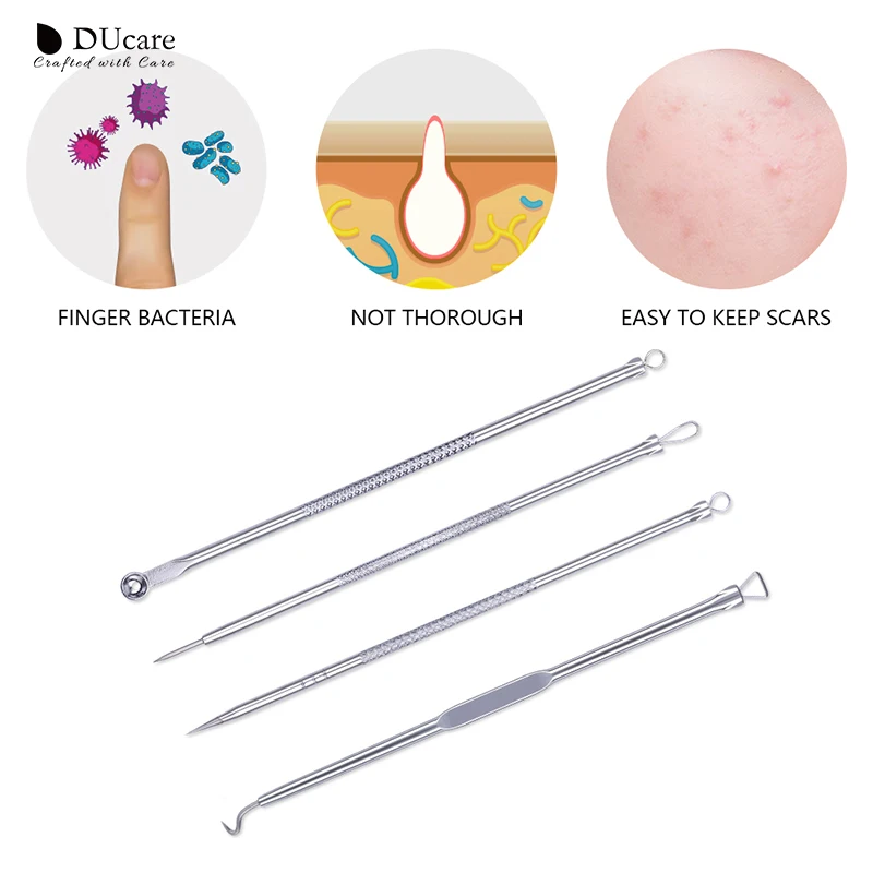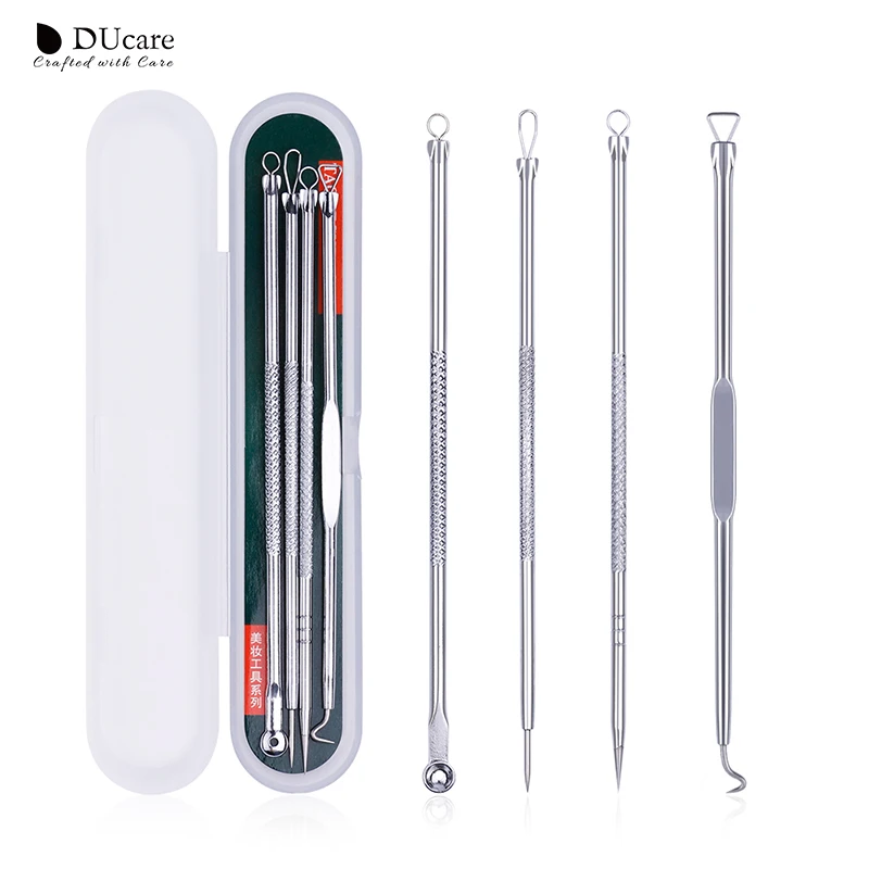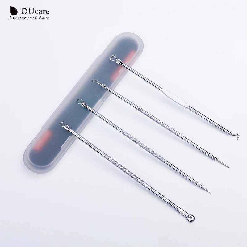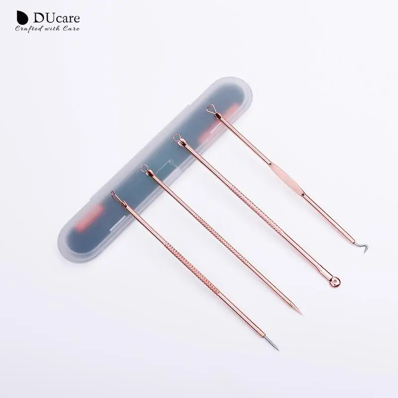 Ложка DUcare 4 шт.компл. для удаления черных точек, комедонов, акне, прыщей, инструмент для удаления черных точек, ложка для лица, инструмент для ухода за кожей, иглы для очистки пор лица
