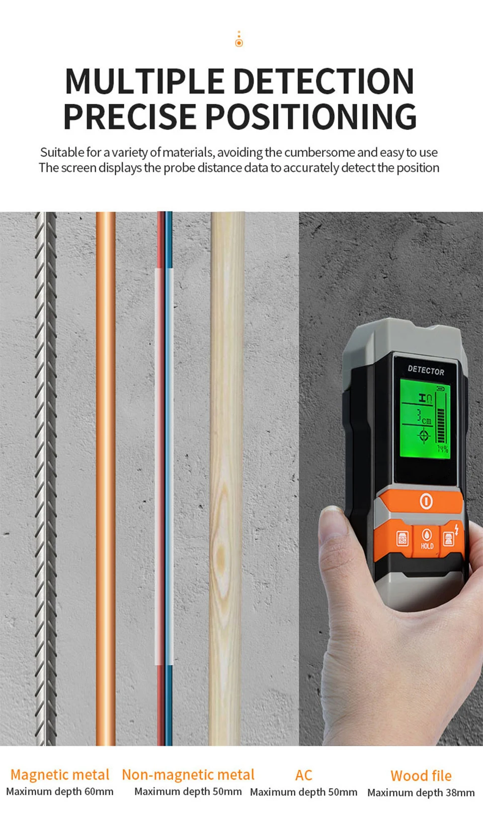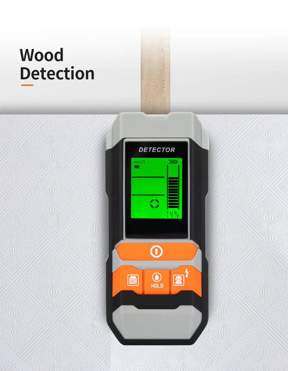 Брал прибор для поиска остатков гвоздей и шурупов в досках при обработке их на фуганке. Выглядит круто, управляется просто. Непонятна функция поиска дерева... Но попробую углубиться в инструкцию на английском языке. О чувствительности. У меня, как у столяра, особые требования. Для поиска миллиметрового остатка гвоздя в доске на глубине 2 см. мне чувствительности хватает только-только. Но хватает. Ну а если вам нужно искать объём металла, скажем, как шуруп, то за 12 см. уже вовсю пищит. И автоматически определяет, магнитный материал или нет. И есть такой значок, типа прицела, который загорается при максимальном сигнале. Проводку под напряжением вообще без проблем ищет. Для этого есть особый режим. Даже если не течёт ток. Я хожу и как ребёнок всё подряд ищу. Доволен.