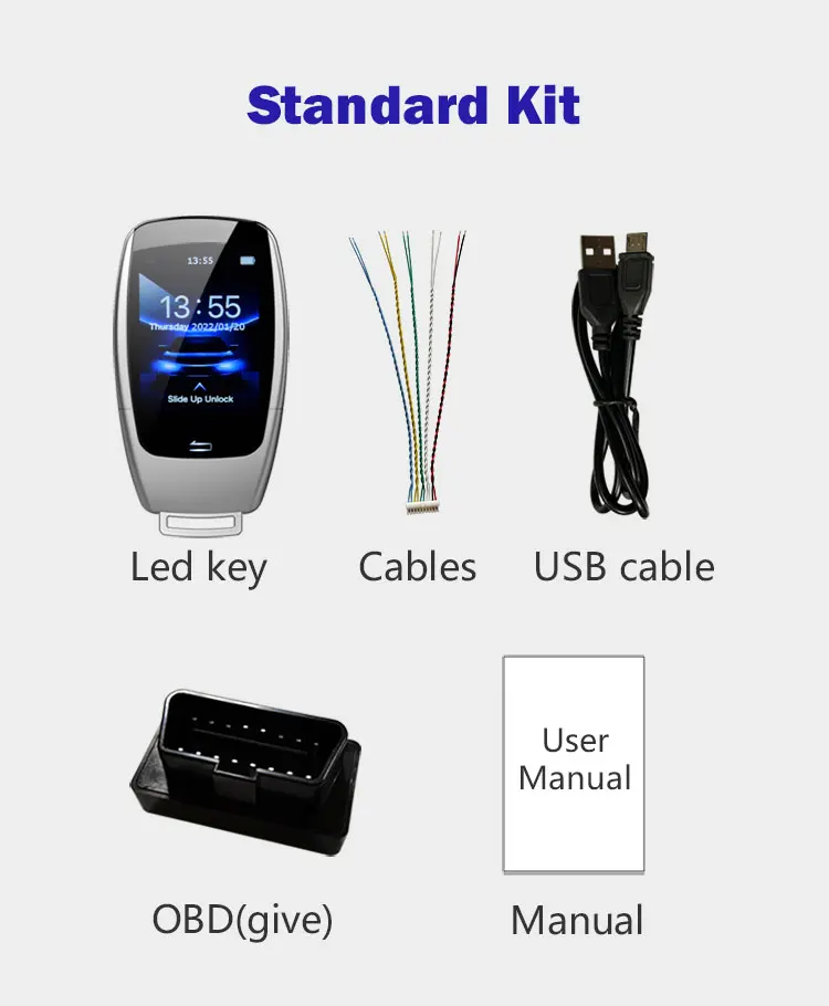 1 жидкий ЖК-ключ для автомобиля, 1 БД-устройство, 1 белая подарочная коробка.